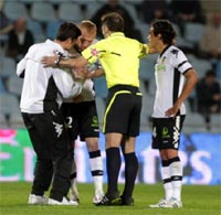 ヘタフェ戦の後半32分に相手選手と衝突したマテューは、直後、充分な呼吸が出来ない状態に陥り、ピッチから担架で運び出されました。