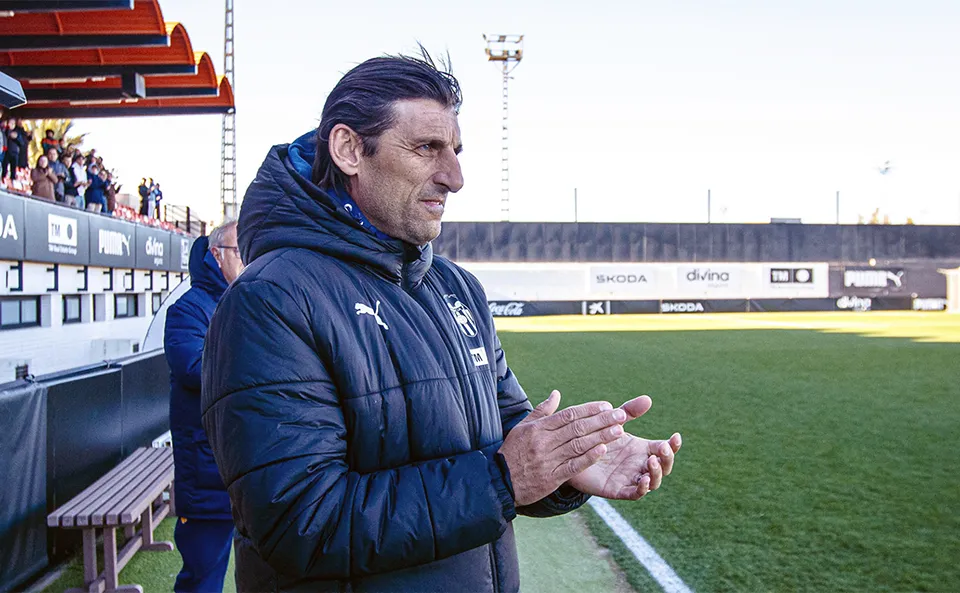 アングーロ監督は2013年にバレンシア・アカデミーの指導者として働き始めました。インファンティル、カデーテ、フベニールでの経験を得て、2021/2022シーズンからVCFメスタージャの監督に昇格。就任初年度にRFEF3部で優勝して昇格を勝ち取り、翌2022/2023シーズンにはRFEF2部リーグに復帰したばかりのチームを昇格プレーオフ圏の3位まで躍進させました。また、ハビ・ゲラ、ディエゴ・ロペス、フラン・ペレス、アルベルト・マリといったいわゆる"キンタ・デル・ピポ"と呼ばれる選手たちをトップチームに送り出しました。